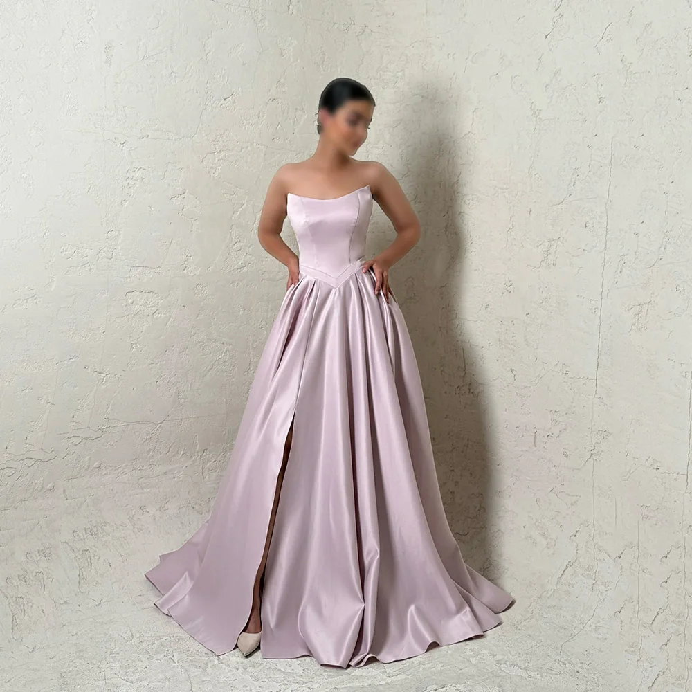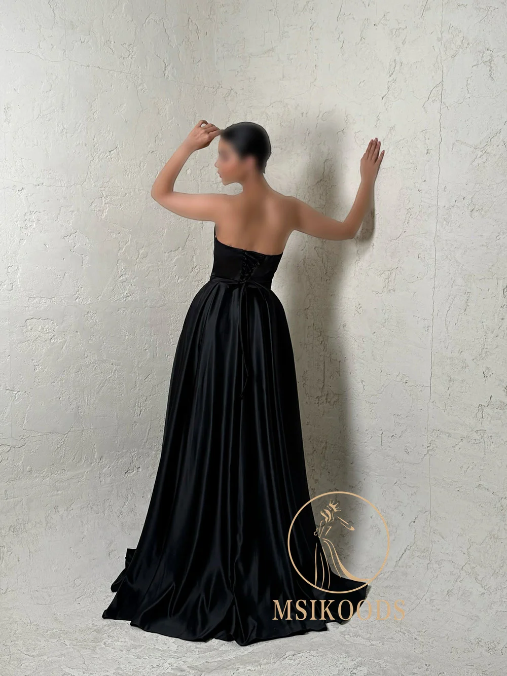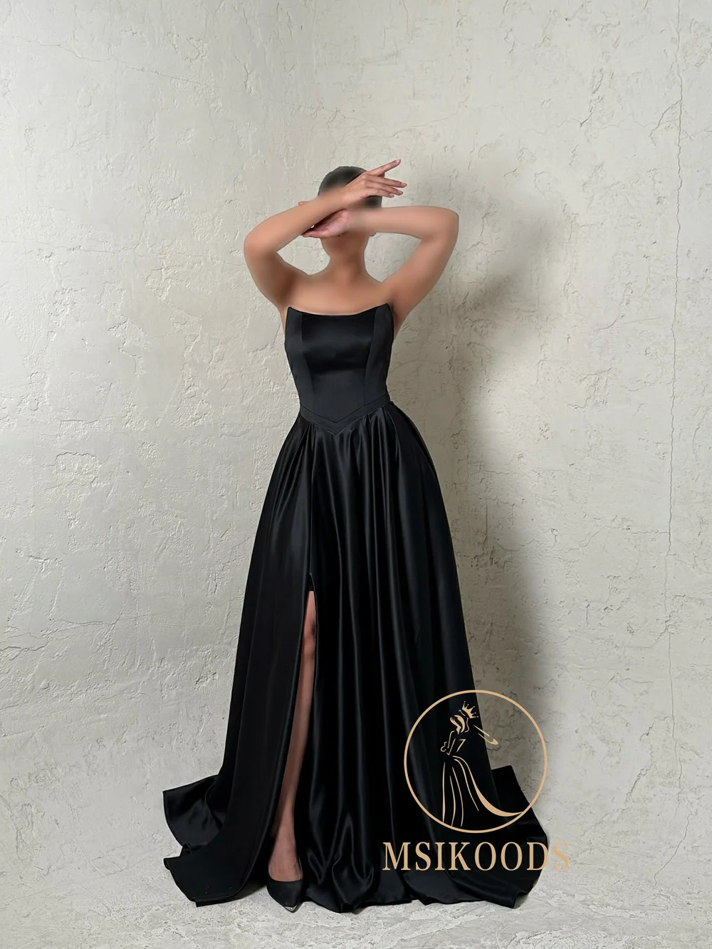 Bán buôn Msikoods Satin Evening Dresses Strapless Elegant Party Dress High Slit Backless Long Formal Dress Party Prom Gown Customized giá rẻ và chiết khấu. Mua trực tiếp từ Msikoods Bridal Store.